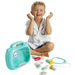 - Specialios funkcijos: Prietaisai turi funkcijas, kurios leidžia vaikams pasijusti tikrais gydytojais, pvz., stetoskopas su širdies plakimo garsu ir šviesa, kraujospūdžio matuoklis su apšviestu ekranu ir reguliuojamas termometras.