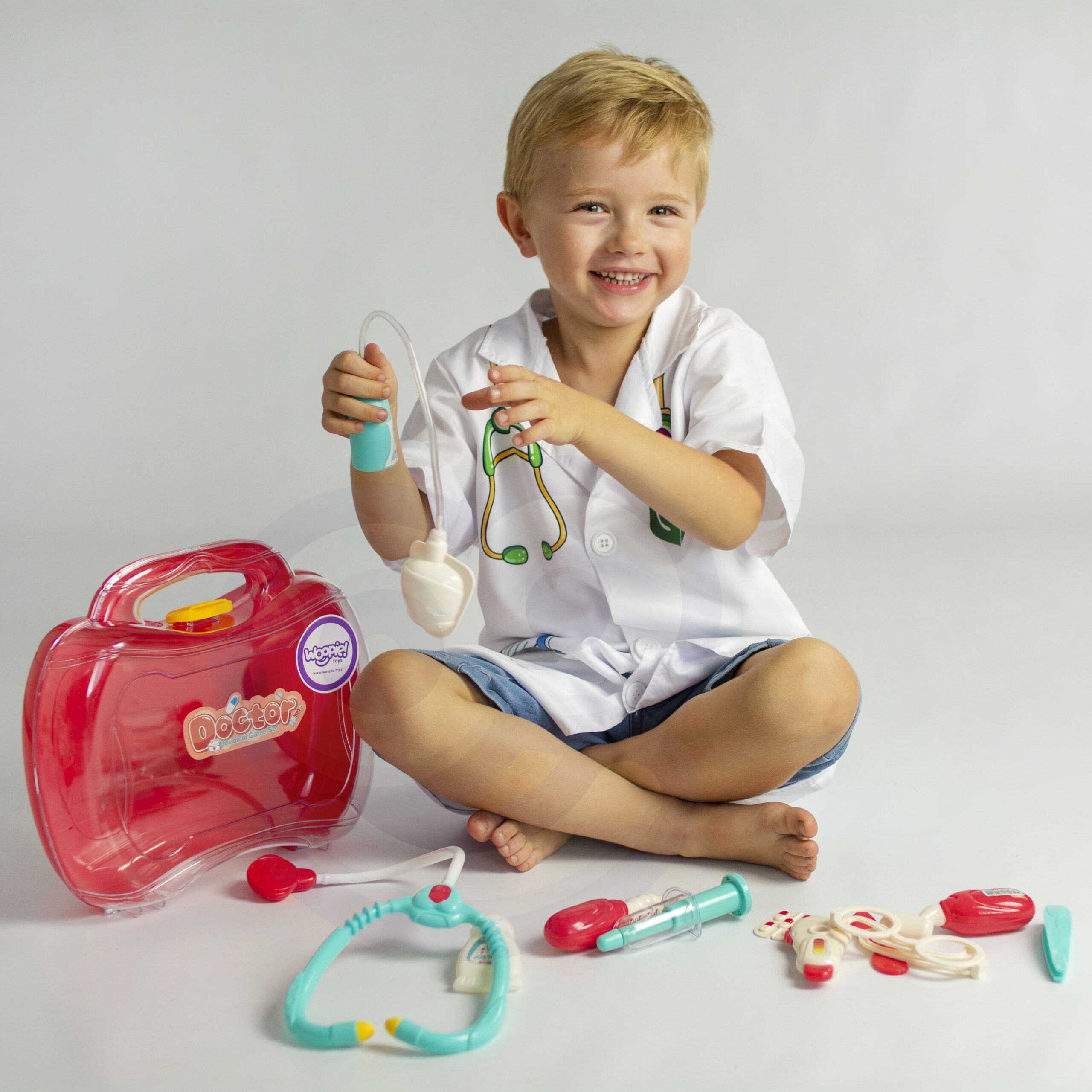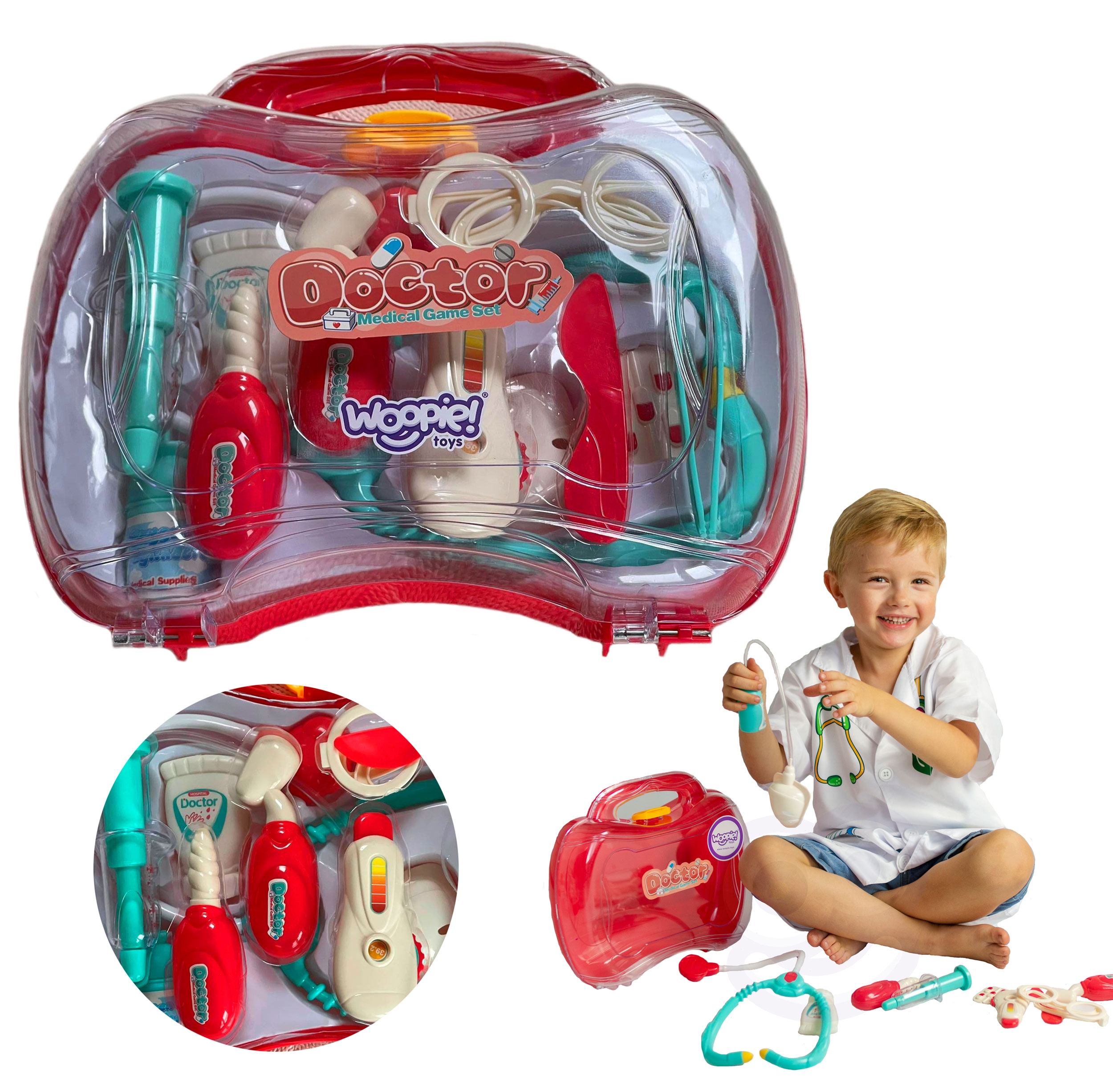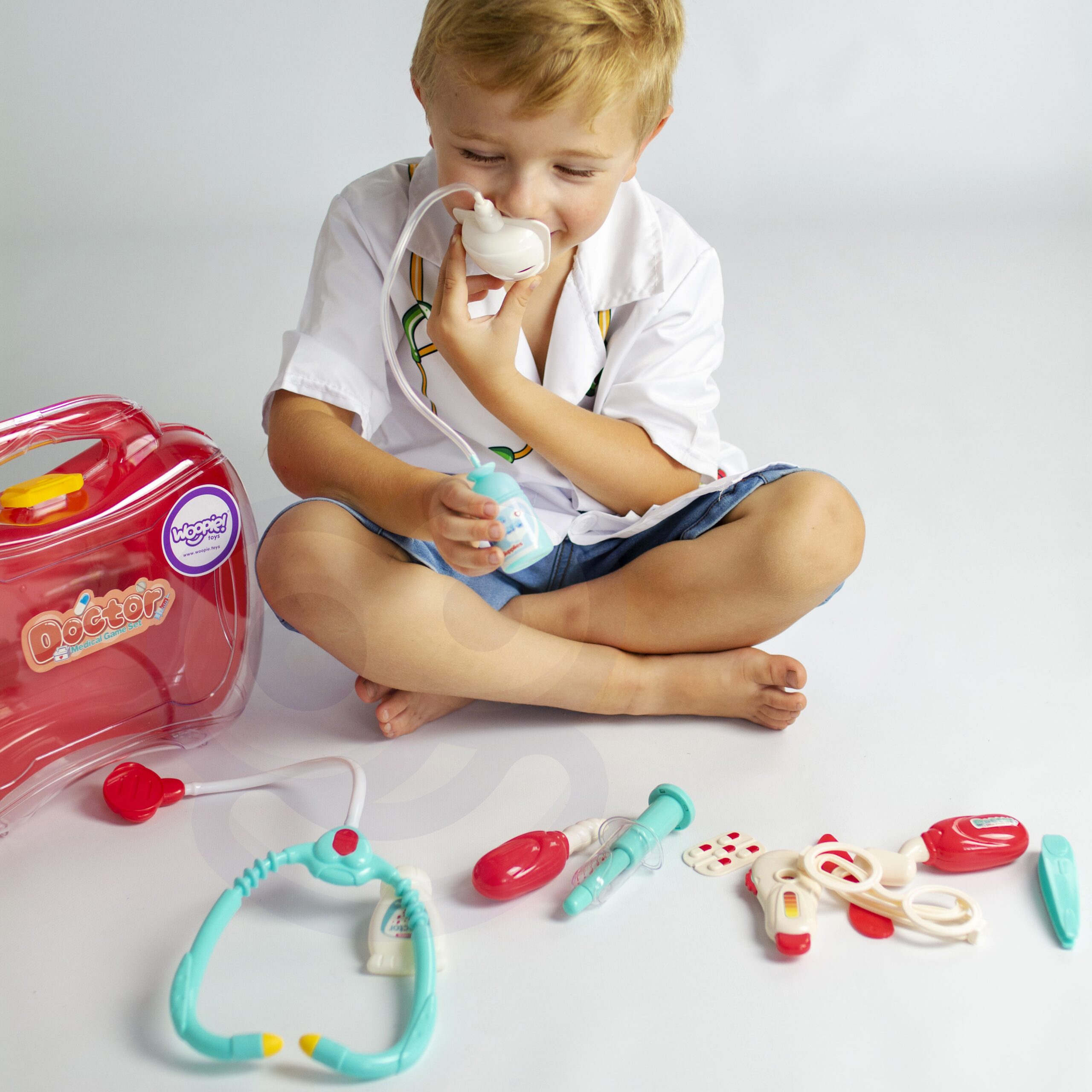 Šis Mažojo gydytojo rinkinys iš WOOPIE suteikia vaikams galimybę pasinerti į gydytojo vaidmenį! Rinkinyje yra viskas, ko reikia mažam gydytojui: stetoskopas, termometras, švirkštas ir daugybė kitų medicinos priemonių. Žaislai turi specialias funkcijas, kad patirtis būtų kuo realesnė. Termometras gali parodyti rezultatą (pasukant rankenėlę), o švirkštas veikia kaip tikras. Visas rinkinys telpa patogiame lagamine, kurį vaikas gali nešiotis su savimi, dalintis su draugais ir lavinti vaizduotę, atliekant gydytojo arba paciento vaidmenį.