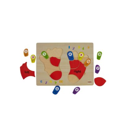 Medinė dėlionė iš TOOKY TOY prekės ženklo yra puikus edukacinis žaislas, padedantis vaikams išmokti skaičiuoti, atpažinti dešinę ir kairę rankas